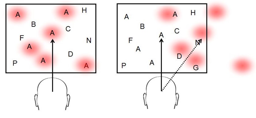 How do we attend to an object and what happens when this process breaks down in stroke patients with spatial neglect? Organisms receive a wealth of sensory inputs that far exceed neural processing resources. To deal with the bottleneck, only the most important stimuli are selected. This is called attention. To attend to an object, one needs to know its location. All sensory modalities provide location cues, however, their coordinate systems differ, e.g. the location of visual objects is coded relative to the center of the retina while that of sounds is relative to the head midline. Retinal information is insufficient for an accurate perception of object location. The same retinal projection corresponds to different locations in the physical space, depending on the direction of gaze (Figure). To obtain a single estimate of location, the brain transforms between each sense’s coordinate system using information about the relative positions of our sensory organs. The information about the rotation of the eyes in the head is essential for this transformation. A former PhD student, Barthel Odoj, and I reported that an eye position signal in the somatosensory cortex (eye proprioception or oculoproprioception) is specific for spatial attention. This signal is less important for locating external objects (where to reach) and more important for allocating internal priorities for perception (where to attend). This discovery is exciting not only because it shows that a basic sensorimotor signal can play a selective role in cognition rather than in movement control, but also because it indicates a potential disease mechanism in spatial neglect. Spatial neglect is a common disorder in stroke survivors characterized by a lateral displacement in the focus of attention, often to the right of the body midline. We found that when patients with spatial neglect are given an attention cue, they do not attend to its exact location, but rather, slightly to the right of it. This error is present even in their right, "normal", hemispace. Could a disease mechanism in spatial neglect be an error in the cortical gaze direction signal? Our research predicts that such an error could selectively impact the brain's attentional priority map (Figure). Could one treat spatial neglect by targetting the oculoproprioceptive signal using repetitive transcranial magnetic stimulation? |